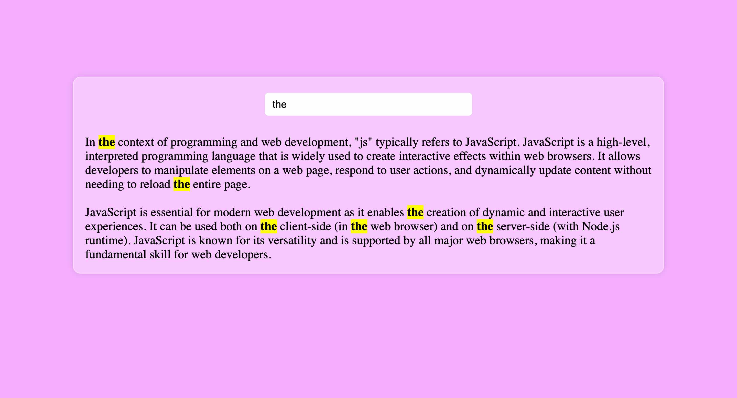 Creating Highlight Searched Text By Using HTML, CSS & JAVASCRIPT.